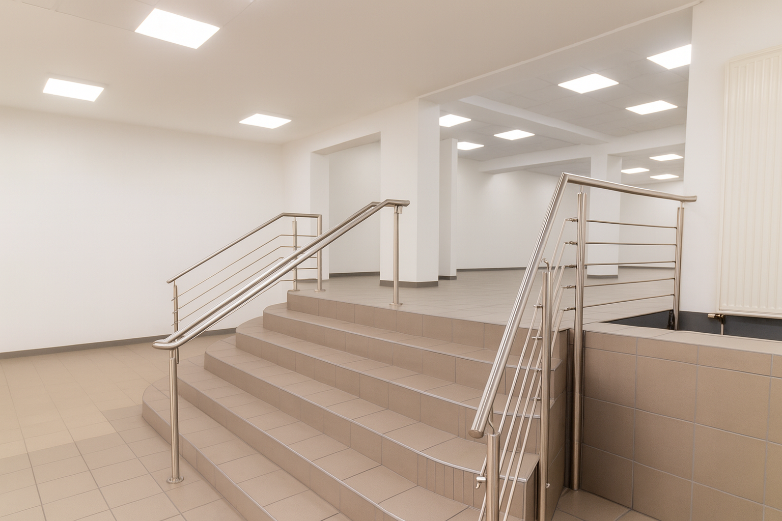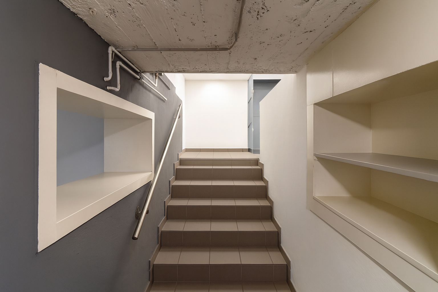 Großzügige Sichtachsen in die Fläche; interne Verbindung in das Untergeschoss (Lager/Sozial/Teeküche/WC). Ware und Material lassen sich getrennt vom Kundenbereich disponieren – kurze Wege zwischen Verkaufs-/Praxiszone und Lager optimieren Prozesse.